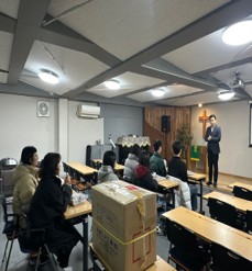 仁川楽園教会のビジョントリップ 2025 2/17 お知らせ 韓国にある仁川楽園教会の教会学校から6人の学生が、姫路にビジョントリップとして訪問しました。 お知らせ 韓東大学の訪問 関連記事 韓東大学の訪問 2025年1月6日 12月22日クリスマス礼拝:教会学校賛美及び食事 2024年12月25日 12月22日クリスマス礼拝:洗礼式 2024年12月25日 キムチ作り(김장) 2024年12月16日 姫路マンナ教会のお墓 2024年12月16日 11月17日収穫感謝礼拝 2024年11月18日 韓国新村教会の使役者と集合写真 2024年11月1日 10月27日~31日まで韓国からリトリートチーム訪問 2024年10月2日